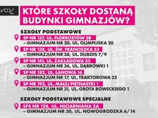 Niezwłocznie po otrzymaniu pozytywnej opinii projekty trafią do radnych z Komisji Edukacji i Komisji Finansów, a następnie – na sesję Rady Miejskiej. Władze Łodzi chcą aby do końca roku 2018 uczniowie szkół podstawowych nr: 137, 138, 141, 182 i 193 mogli korzystać z budynków gimnazjów nr: 20, 38, 36, 17, 31. Odrębna uchwała dotyczy Specjalnej Szkoły Podstawowej nr 128, w która już korzysta z budynku Gimnazjum nr 30, ale jest to rozwiązanie tymczasowe.