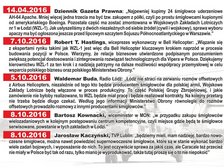 - Polskie wojsko straciło szansę na 50 nowoczesnych helikopterów, a Łódź na nowe miejsca pracy. Działacze PiS-u wiele obiecywali. Antoni Macierewicz mówił nawet o budowaniu śmigłowców na Ukrainie. Zamiast 50-ciu nowych śmigłowców wojsko polskie posiada obecnie tylko 4. W lakierni w zastępstwie helikopterów malowane są ciężarówki – dodał radny Mateusz Walasek.