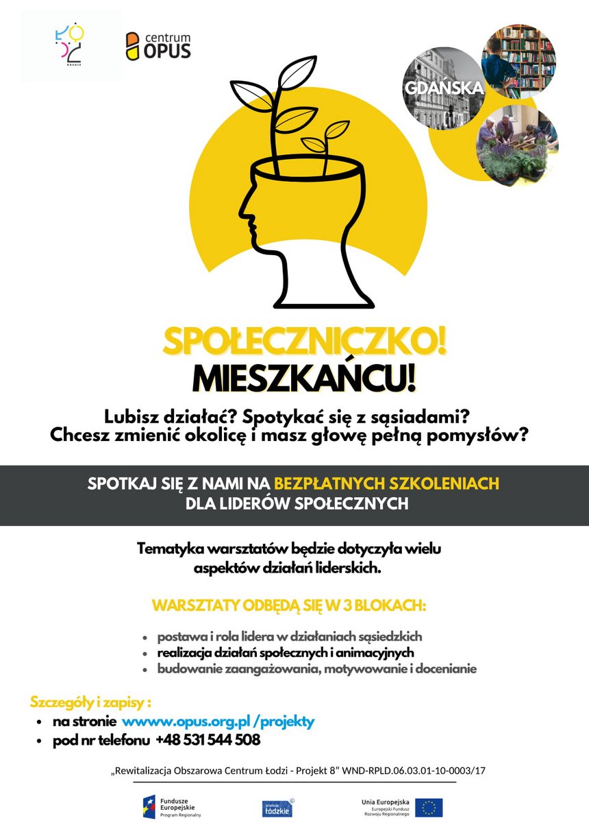 Lubisz działać? Spotykać się z sąsiadami? Chcesz zmienić okolicę i masz głowę pełną pomysłów? Jeśli tak, zapraszamy Cię na warsztaty dla Liderów Społecznych. Tematyka warsztatów będzie dotyczyła wielu aspektów działań liderskich.