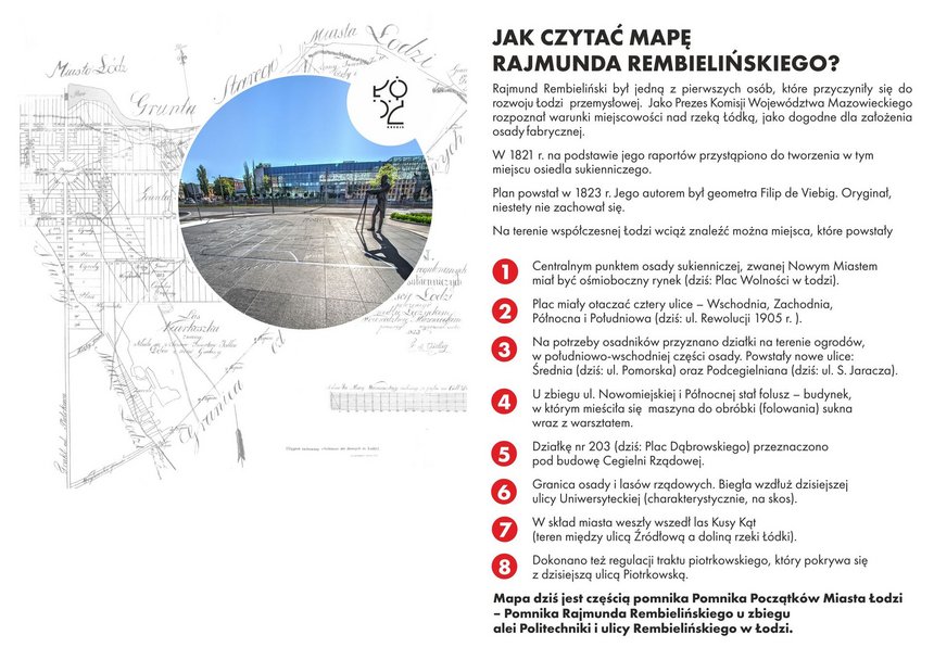 Po podpisaniu porozumienia zgierskiego 30 marca 1821 roku Rajmund Rembieliński zlecił wytyczenie planu osady sukienniczej Nowe Miasto. W 1823 roku geometra Filip de Viebig rozpoczął prace nad opracowaniem mapy, która obecnie jest jedną z najbardziej rozpoznawalnych pamiątek z początków przemysłowej Łodzi. O „drugich narodzinach” Łodzi przypominają „Rajmundalia”, coroczne wydarzenie przy pomniku Rajmunda Rembielińskiego, który stoi u zbiegu ul. Rembielińskiego i al. Politechniki. Wyeksponowana zostanie na nim koloryzowana wersja mapy.