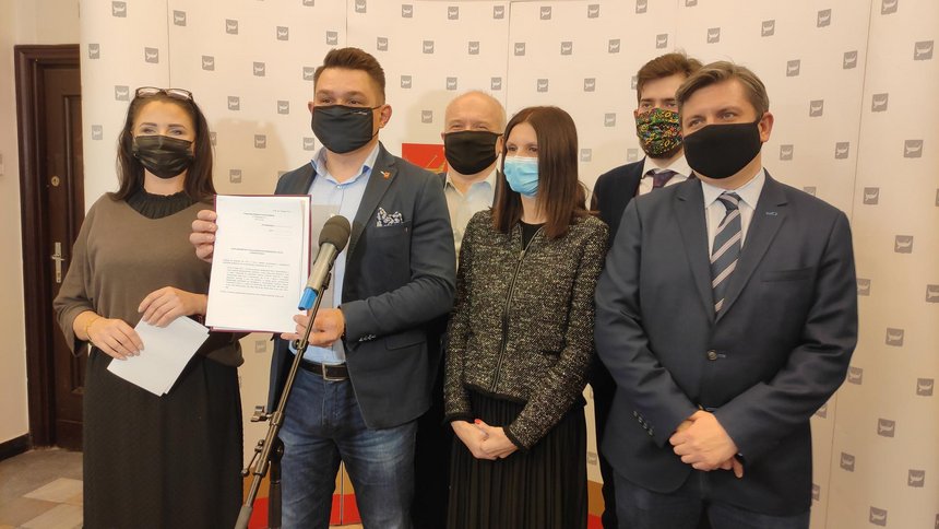 Przewodniczący Rady Miejskiej w Łodzi, Marcin Gołaszewski: – W dniu wczorajszym (15.02) wpłynął do mnie wniosek pani radnej Marty Grzeszczyk, która poinformowała mnie, jako przewodniczącego Rady Miejskiej, o wystąpieniu z partii Prawo i Sprawiedliwość, a jednocześnie, w dniu 15 lutego, o wystąpieniu z klubu radnych Prawa i Sprawiedliwości. Jednocześnie informuje, iż staje się ona radną niezrzeszoną Rady Miejskiej w Łodzi. Chciałbym też poinformować, że jako przewodniczący Rady Miejskiej, zgodnie z zapisami statutowymi, stoję nie tylko na straży powagi sesji Rady Miejskiej, ale również reprezentuję wszystkich radnych na zewnątrz. Niedopuszczalne są jakakolwiek próby wywierania nacisków na radnego, który swój mandat wypełnia z woli wyborców. Pani radna została wybrana przez łodzian i ma prawo ich reprezentować. Jej głównym zadaniem jest pozostawanie w kontakcie z mieszkańcami i to ona reprezentuje interesy mieszkańców, interesy Łodzi i nie może na nią być wywierana jakakolwiek presja. Chciałem także poinformować, że w związku z tym iż istnieje realne podejrzenie, iż zostało w tym wypadku naruszone prawo, a więc Kodeks Postępowania Karnego, działając na podstawie art. 304 KPK składam zawiadomienie o uzasadnionym podejrzeniu popełnienia czynu zabronionego, polegającego na tym, że „w dniu 12 lutego 2021 r. w Łodzi, członkowie zarządu partii Prawo i Sprawiedliwość w Łodzi, zmuszali funkcjonariuszkę publiczną w osobie radnej Rady Miejskiej w Łodzi, panią Martę Grzeszczyk, do zaniechania prawnej czynności służbowej w postaci utrzymywania stałej więzi z mieszkańcami (art. 23 ust. 1 Ustawy o Samorządzie Gminnym) używając w tym celu przemocy w postaci groźby spowodowania bezprawnego pozbawienia jej zatrudnienia w Wojewódzkim Funduszu Ochrony Środowiska w Łodzi”. To oczywiście nieuprawniona próba szantażu, której pani radna została poddana, jest to próba wywierania presji na nią, co nie może spotkać się z milczeniem. To musi spotkać się ze sprzeciwem i protestem ze strony Rady Miejskiej w Łodzi.