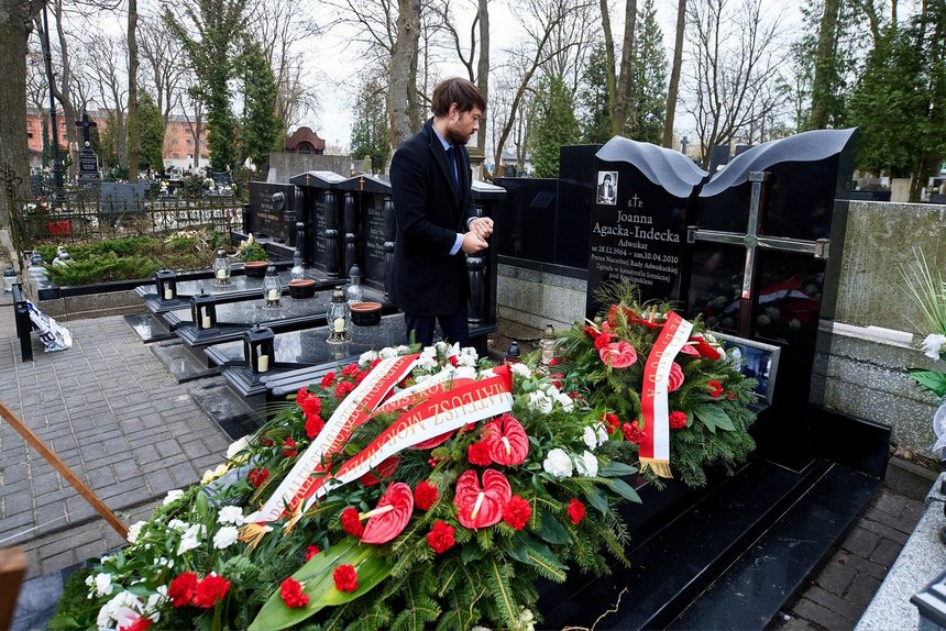 Zginęła 10 kwietnia 2010 r. w katastrofie polskiego samolotu Tu-154M pod Smoleńskiem, w drodze na obchody 70. rocznicy zbrodni katyńskiej, a 19 kwietnia została pochowana na Starym Cmentarzu w Łodzi. Jej imieniem nazwano plac przed Sądem Apelacyjnym i Okręgowym w Łodzi. Joanna Agacka-Indecka (ur. 1964 r.) całe życie związana była z Łodzią. Ukończyła prawo na Uniwersytecie Łódzkim w 1988 r. i została pracownikiem naukowym tej uczelni.