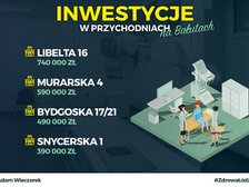 - W 2018 r. w przychodni przy ul. Libelta 16 przeznaczymy 390 tys. zł m.in. na siłownie zewnętrzne oraz 350 tys. zł m.in. na budowę nowego centrum dla seniorów - dodaje Maciej Adamiec, dyrektor Miejskiego Centrum Medycznego Bałuty. - Przychodnia przy ul. Snycerskiej 1 zostanie przebudowana pod potrzeby osób niepełnosprawnych i starszych oraz wyposażona w nowy sprzęt medyczny. W poradni przy ul. Bydgoskiej 17/21 trwa przebudowa pomieszczeń pod poradnie. Przychodnia zostanie też doposażona. W przychodni przy ul. Murarskiej 4 trwa adaptacja pomieszczeń na parterze.