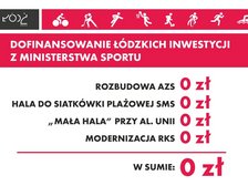 - Od rządu polskiego na rozbudowę AZS dostaliśmy 0 zł, na halę do siatkówki plażowej SMS – 0 zł, na małą halę przy al. Unii – 0 zł, na modernizację RKS – 0 zł. To namacalnie pokazuje, jak pan minister Bańka okłamał wczoraj wszystkich mieszkańców Łodzi. Posłużył się też ohydną manipulacją, że o braku ministerialnego wsparcia dla rozbudowy RKS wiedział nasz mistrz Adam Kszczot, który na każdym spotkaniu i na każdej konferencji stał z nami ramię w ramię i lobbował na rzecz tej inwestycji. Tak minister sportu naszego rządu podchodzi do trzeciego co do wielkości miasta w Polsce, które w ostatnich latach wydało pół miliarda na infrastrukturę, programy i imprezy sportowe – powiedział Trela.