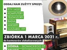 1 marca elektrośmieci będzie można wyrzucić do kontenerów wystawionych na Górnej – na ulicy Słowackiego 27, a na Polesiu, ul. Olimpijska 7A. O kolejnych terminach mobilnej zbiórki elektroodpadów mieszkańcy będą informowani na bieżąco.