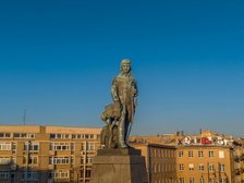 Na cokole ustawiono statuę (ok. 4 m wysokości, waga – 4 t), która przedstawia Kościuszkę trzymającego w lewej ręce rulon tekstu uniwersału, prawą zaś ochraniającego dębowe drzewko – symbol wolności. Przy lewym boku ma szablę, a u stóp spoczywają elementy zbroi. Kościuszko na łódzkim pomniku jest zwrócony twarzą w stronę ulicy Piotrkowskiej i stoi na zrewitalizowanym, pełnym zieleni placu Wolności