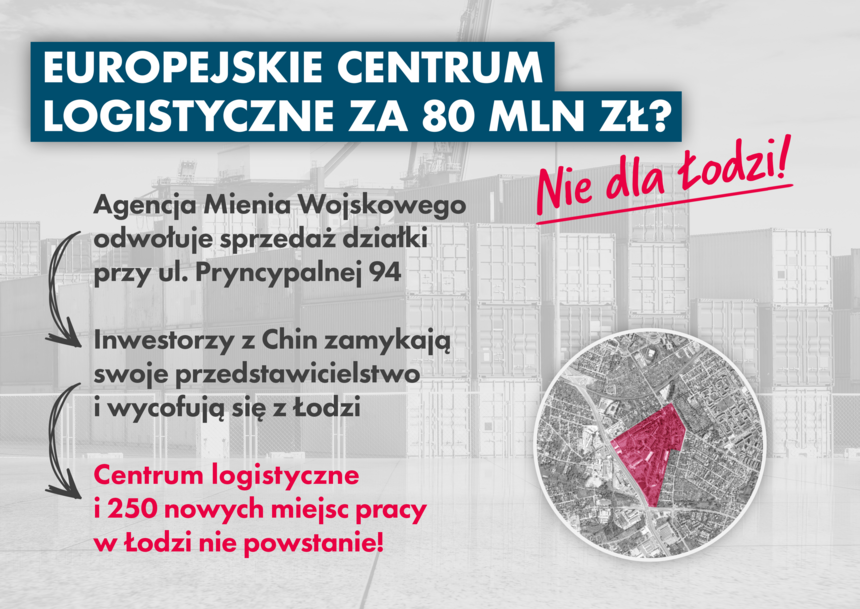 - Agencja Mienia Wojskowego wycofywała się z tych planów sprzedażowych. Dziś wiemy, że chiński terminal przeładunkowy nie powstanie, bo minister obrony narodowej nie chce sprzedać tego terenu inwestorom. To bardzo zła wiadomość dla naszego miasta. Łódź ma szansę stać się logistycznym centrum Polski. To tu krzyżują się autostrady A1 i A2. Musimy wykorzystać także szlaki kolejowe, dlatego nie odpuszczamy i będziemy walczyć o to, by w naszym mieście były duże centra logistyczne nie tylko dla tirów, ale także dla kolei – mówił na konferencji prasowej Tomasz Kacprzak.