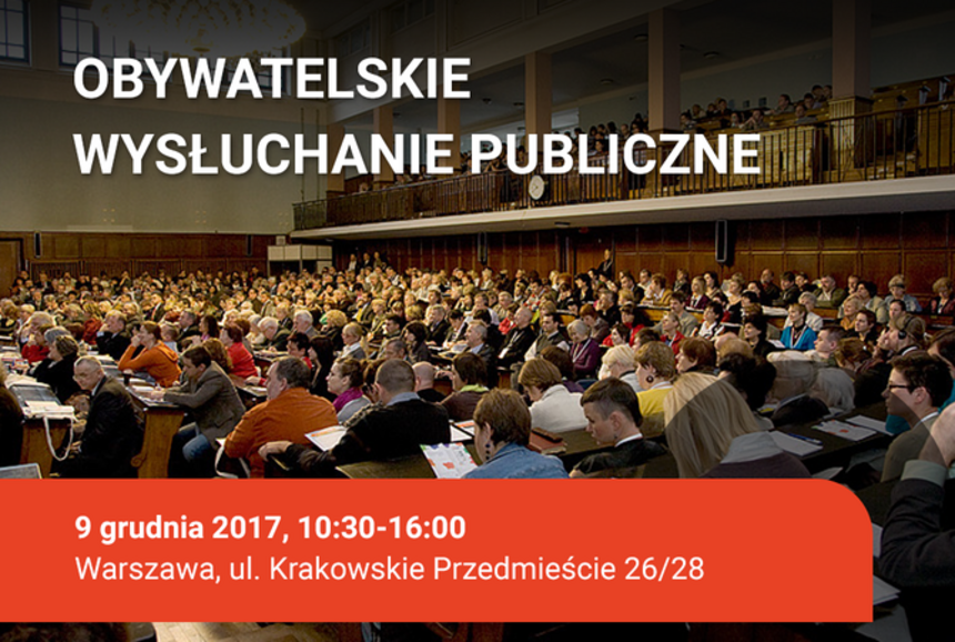 Posłowie uniemożliwili zorganizowanie wysłuchania opinii licznych środowisk, których dotyczą zmiany, dlatego Związek Miast Polskich wraz z innymi organizacjami samorządowymi i pozarządowymi organizuje obywatelskie wysłuchanie publiczne, które odbędzie się w sobotę 9 grudnia 2017 r. w godzinach 10:30- 16.00 w budynku dawnej Biblioteki Uniwersytetu Warszawskiego (ul. Krakowskie Przedmieście 26/28).
