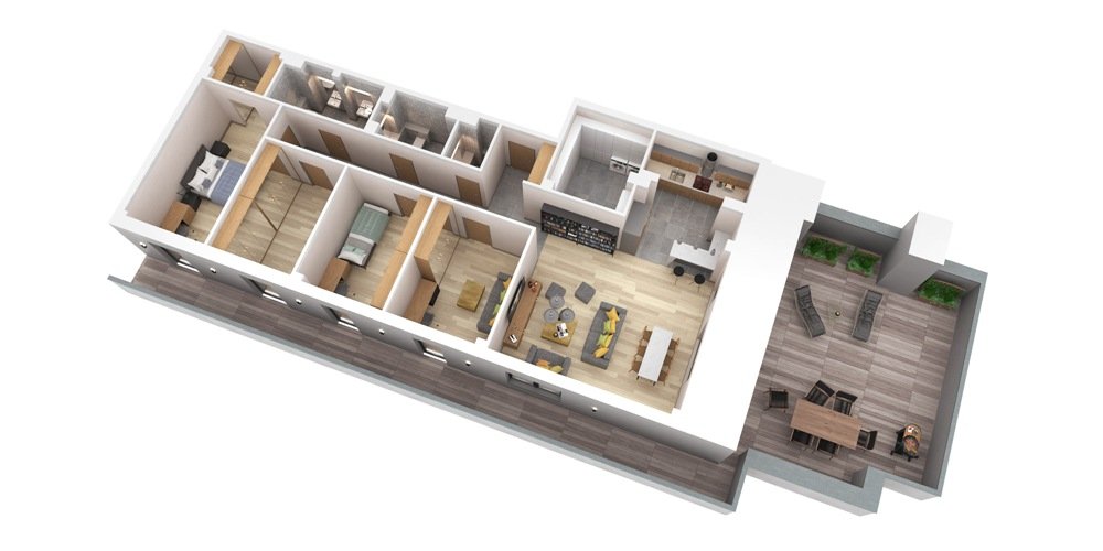 W obu budynkach powstanie łącznie 205 mieszkań o metrażu od 34 do 141 mkw. Będą to zarówno lokale 1-, 2, 3 pokojowe jak i większe, w tym dwupoziomowe apartamenty z balkonami oraz 8 luksusowych mieszkań typu penthouse z dużymi tarasami. Na parterze jednego z budynków przewidziano powierzchnię użytkową, w której powstanie sklep spożywczy. Do dyspozycji mieszkańców będą zarówno miejsca parkingowe oraz garażowe. Będą one zlokalizowane w hali garażowej bloku oraz w osobnym budynku garażowym.