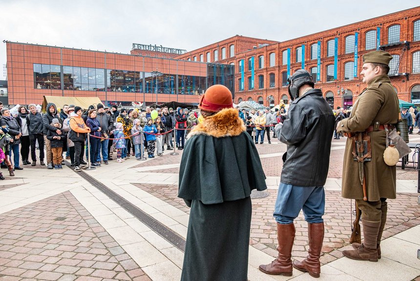 Przy stoiskach Urzędu Miasta Łodzi łodzianie przenieśli się w czasie o 100 lat. Rekonstrukcję historyczną stanowiły cztery dioramy: szkoła z lat 20. XX wieku, Wojsko Polskie 1925 roku – (prezentacja umundurowania, broni i sprzętu wojskowego, w tym ckm Hotchkiss, rkm Chauchat, kb Lebel, granaty i plakaty propagandowe); sztuka i styl Art Deco (pokaz mody międzywojennej, przykłądy wzornictwa, biżuterii, plakatów Zofii Stryjeńskiej i obrazów Tamary Łempickiej); historia radia – z okazji 100-lecia pierwszej audycji radiowej w Polsce – zabytkowe odbiorniki i dźwięki dawnych programów. Dodatkowo pojawili się rekonstruktorzy w strojach lotników z lat 20. XX wieku. Miasto Łódź opowiedziało zatem historię Polski z 1925 - historię kraju wciąż jeszcze rozwijającego się i przeżywającego liczne trudności, ale gotowego już pochwalić się pierwszymi osiągnięciami i wynalazkami "made in Poland". W 1925 Polska wzięła udział w paryskiej wystawie sztuki wzornictwa, prezentując tam najlepsze dzieła "młodego" polskiego designu i sztuki dekoracyjnej. W 1925 miała też miejsce pierwsza próbna emisja sygnały radiowego, dająca początek bardzo popularnej przed wojną tradycji słuchania radia. Miasto Łódź nie zapomniało również o 100-leciu łódzkiego lotniska oraz o wielkiiej inicjatywie prezydenta Aleksego Rżewskiego na rzecz łódzkiego szkolnictwa. Zrekonstruowana klasa szkolna, w której można było m.in. nauczyć się kaligrafii i sztuki liczenia na liczydle, miała przypomnieć, że Łódź lat 20. była polskim prekursorem w zakresie organizacji bezpłatnego szkolnictwa podstawowego.