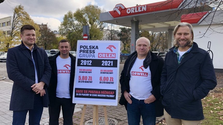 Bartosz Domaszewicz, wiceprzewodniczący Rady Miejskiej w Łodzi: – W ostatnim czasie mamy do czynienia z bardzo dużym, skokowym wzrostem cen paliw. Na większości stacji benzynowych cena osiągnęła już poziom około 6 zł za 1 litr, co jest, w dużej mierze, efektem polityki tego rządu, polegającej na przerzucaniu kosztów różnego rodzaju działań politycznych na mieszkańców i obywateli. Jesteśmy dzisiaj pod stacją z grupy Orlen, jak państwo wiecie, grupa Orlen prowadzi działania nie tylko w sektorze paliwowym, do czego jest powołana, a także w sektorze medialnym – niedawno nabyła całą Grupę Polska Press i dzisiaj widzimy efekty tej polityki. Możecie państwo zaobserwować, jak wygląda ta sytuacja na przykładzie innych krajów naszego kontynentu, gdzie ceny paliw również wzrastają, ale ten wzrost prawie nigdzie nie jest tak wysoki jak w Polsce, gdzie przekroczył 28%. Dzisiaj płacimy 6 zł, ale pewnie to nie jest ostatnie słowo prezesa Obajtka i prezesa Kaczyńskiego, niedługo będziemy płacić jeszcze więcej.