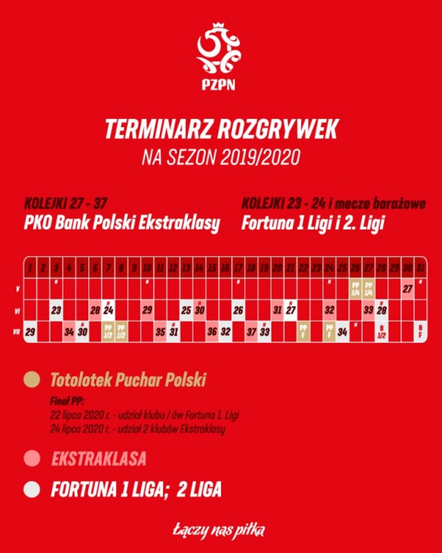 Na 2 i 3 czerwca zaplanowano natomiast 23. kolejkę 2. ligi, w której Widzew przed własna publicznością ma grać z częstochowską Skrą. Dokładne daty i godziny rozpoczęcia drugoligowych spotkań będą jednak ustalone w późniejszym terminie.