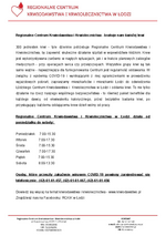 Regionalne Centrum Krwiodawstwa i Krwiolecznictwa w Łodzi działa od poniedziałku do soboty: