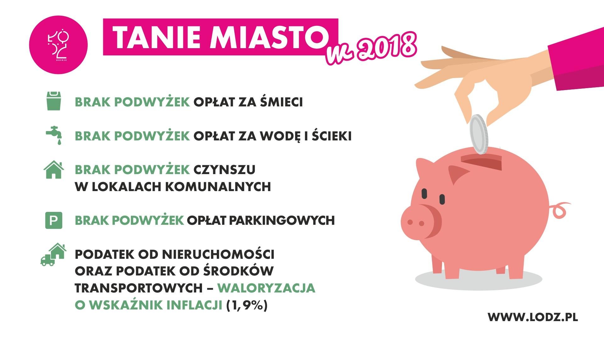 Podczas konferencji prasowej Hanna Zdanowska tłumaczyła, że opłaty te pozostają na niezmienionym poziomie, aby nie obciążały budżetów domowych łodzian, a pieniądze posłużyły realizacji rodzinnych celów. - Dlatego podjęłam decyzję, że stawki opłat za wywóz śmieci pozostaną na niezmienionym poziomie, czyli 7 i 12 zł w zależności od tego, czy płacimy za wywóz śmieci bez segregacji czy posegregowanych. Nie będzie także podwyżek opłat za wodę i ścieki dla gospodarstw domowych. Za wodę i ścieki zapłacimy 8,55 zł brutto, co jest jedną z najniższych stawek w Polsce. Opłaty parkingowe pozostaną bez zmian. Nie planujemy również żadnych podwyżek, jeżeli chodzi o stawki czynszu w zasobie komunalnym. Co więcej, jeżeli radni przyjmą nasz projekt uchwały, w przyszłym roku łodzianie będą mogli wykupić mieszkania na własność z większymi bonifikatami niż obecnie - zdeklarowała prezydent Łodzi.
