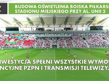 Przypomniał, że na sezon 2018/2019 ŁKS otrzymał licencję z nadzorem infrastrukturalnym. Głównym punktem tego nadzoru jest oświetlenie, które zgodnie z wymogami powinno być gotowe w rundzie wiosennej. - Jeżeli umowa będzie realizowana zgodnie z założeniami, to w połowie marca oświetlenie przy al. Unii powinno stać się faktem. Trzymamy za to kciuki – powiedział Bliźniuk.