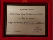 Dodatkowo w trakcie OOM prezes Polskiego Związku Łyżwiarstwa Figurowego Jacek Tascher wręczył MKŁ Łódź nagrodę za zajęcie pierwszego miejsca w klubowej klasyfikacji systemu sportu młodzieżowego za rok 2019.