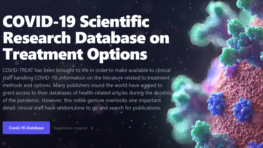 COVID-TREAT gromadzi, selekcjonuje i udostępnia najnowszą literaturę na temat diagnozowania i leczenia COVID-19. Strona została pomyślana, jako „punkt szybkiego dostępu”, który umożliwia personelowi klinicznemu, badaczom i diagnostom, a także każdemu zainteresowanemu ta tematyką dostęp do specjalistycznej literatury. Baza gromadzi informacje z różnych źródeł, w szczególności o nowych metodach i sprawdzonych sposobach leczenia akceptowanych przez środowisko naukowe.