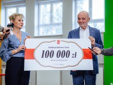 Symboliczny czek na wspomnianą wyżej kwotę odebrała prezes Fundacji Kolorowy Świat Izabela Jachim-Kubiak, która podczas spotkania z przedstawicielami ŁKS nie kryła wzruszenia. – Bardzo dziękuję za ten niezwykły dar, bo takie gesty nie zdarzają się często. To dla nas niesamowity zastrzyk energii. Wzruszenie odbiera mi mowę, bo nie spotyka się często ludzi o tak otwartym i wrażliwym sercu, którzy potrafią w małym dziecku z niepełnosprawnością zobaczyć człowieka i nie patrzą na nie przez pryzmat fizyczności, lecz przez pryzmat jego potrzeb i duszy. Nie wszystkim dana jest ta umiejętność – podkreśliła Jachim-Kubiak.