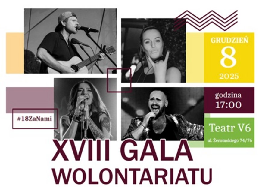 Tegoroczna edycja Gali odbędzie się 08 grudnia 2025 r. (poniedziałek) o godz. 17.00 w Teatrze V6 w Łodzi (ul. Żeromskiego 74/76). Hasło przewodnie –#18ZaNami – symbolicznie podkreśla pełnoletniość wydarzenia, które przez lata stało się jednym z najważniejszych punktów na mapie łódzkiego wolontariatu.