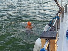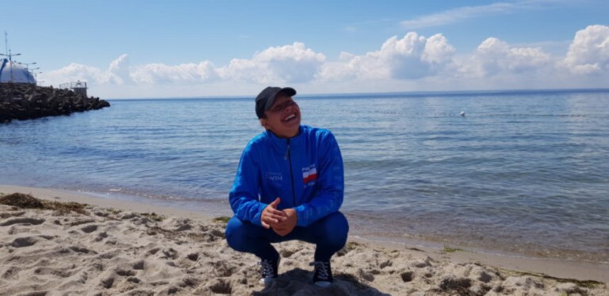 Ja swoją rozpoczęłam 27 lipca 2020 roku o godzinie 5.34, na Małej Plaży na Helu. Ze sternikiem i ratownikiem umówiłam się ok. godz. 5 przy pomniku Neptuna, skąd udaliśmy się do łodzi „Zahir-b”, która miała mi towarzyszyć przez całą trasę. Na miejsce spotkania przyszłam z moim tatą Marcinem, jedną z trenerek panią Pauliną oraz z moją koleżanką Moniką, będącą również ratowniczką. Od początku miałam wrażenie, że kapitan nie do końca wierzył, że dam radę przepłynąć 18 km bez pianki. Zapewniłam go jednak, że jest to dla mnie termiczny trening przed przyszłoroczną próbą zdobycia wpław Kanału La Manche. Wysokość fal początkowo wynosiła ok. 0.5 m, jednak mimo to zapowiadał się piękny, ciepły i słoneczny dzień. Temperatura wody wynosiła 18.6 °C i chociaż pływam również zimą w wodzie o bliskiej 0 °C, to czułam chłód. Dlatego po pierwszej godzinie płynięcia oprócz węglowodanów, aminokwasów i batonów zaczęłam przyjmować ciepłą herbatę z cukrem, która dodawała mi energii i poprawiała termikę. Mniej więcej w połowie dystansu woda zaczęła się uspokajać i im bliżej byłam mojego celu, tym bardziej przypominała flautę. Było to z pewnością bardzo pomocne, ponieważ mniej więcej po 13 km złapał mnie kryzys. Zaczęły mnie boleć barki, ale pocieszający był fakt, że nie marzłam już tak bardzo. Na Babie Doły dotarłam o godzinie 11.04, czyli dokładnie po 5 h 30 min. Jakkolwiek dziwnie to zabrzmi, ale widoki podczas płynięcia były piękne. Za każdym wdechem widziałam błyszczące w promieniach słońca fale oraz wodę łączącą się z niebem na widnokręgu. Co więcej, przez cały czas towarzyszyły mi meduzy. Piszę o tym tak spokojnie, ponieważ bałtyckie meduzy są bezpieczne. Trzy razy miały na mnie ochotę mewy, które kilkukrotnie mnie okrążały. Jedną z nich miałam na wyciągnięcie ręki. Po czasie stwierdziły chyba, że jestem zbyt duża albo może niesmaczna i odpuściły dalsze obserwacje.