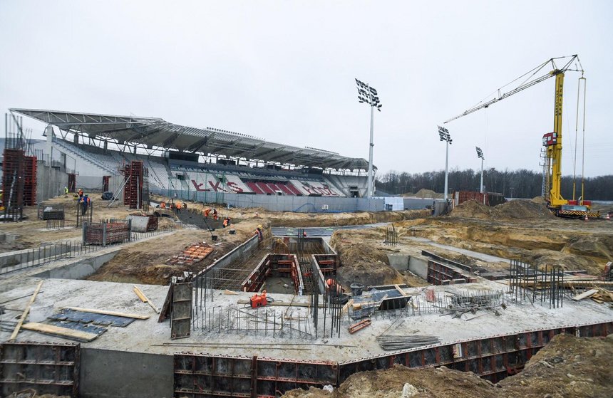 - Wykonaliśmy już fundamenty dla trybuny południowej i palowanie dla trybun południowej i wschodniej. Na tej drugiej kontynuujemy prace fundamentowe. W grudniu mamy w planach montaż izolacji termicznej kanału technologicznego. Będziemy też zasypywać fundamenty na trybunie południowej. Jeżeli pogoda pozwoli planujemy również rozpocząć stawianie słupów na trybunie wschodniej – poinformował dyrektor kontraktu z firmy Mirbud Marek Rosa.