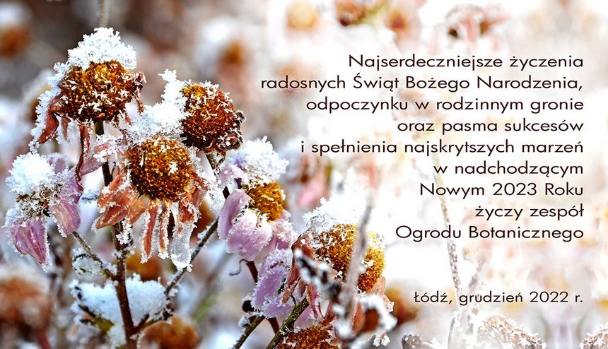 Najserdeczniejsze życzenia radosnych Świąt Bożego Narodzenia, odpoczynku w rodzinnym gronie oraz pasma sukcesów i spełnienia najskrytszych marzeń w nadchodzącym Nowym 2023 Roku życzy zespół Ogrodu Botanicznego