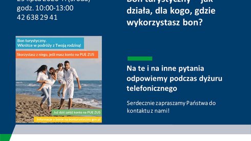 Zakład Ubezpieczeń Społecznych I Oddział w Łodzi zaprasza 29 lipca 2020 r. do skorzystania z dyżuru telefonicznego pt. „Bon turystyczny w pytaniach i odpowiedziach”. więcej