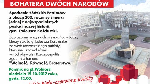 200 lat od śmierci Tadeusza Kościuszki mija 15 października 2017 roku. Tego dnia uczcimy pamięć Bohatera Dwóch Narodów, polskiego i amerykańskiego oraz 100-lecie uchwały Rady Miejskiej w Łodzi o… więcej