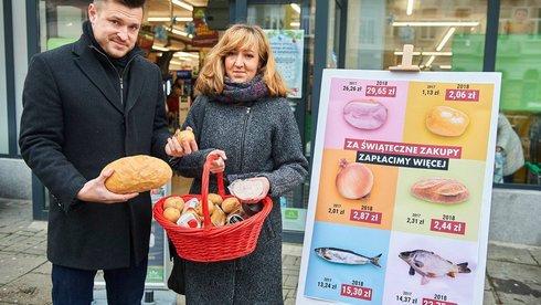 Radni Marcin Hencz i Emilia Susniło-Gruszka w trakcie przedświątecznych zakupów sprawdzili, jak zmieniły się, w porównaniu do poprzedniego roku, ceny produktów w 2018 roku. więcej